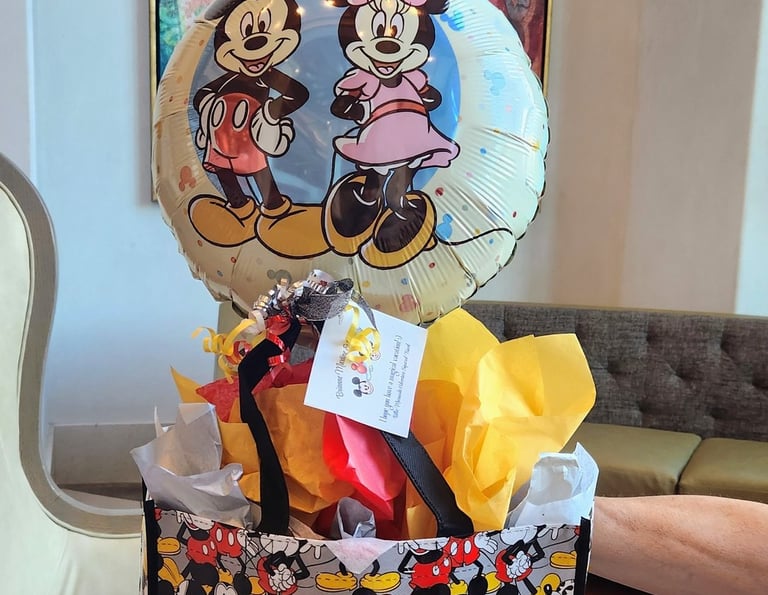 Baskets packed with Disney snacks and keepsakes for your WDW stay.